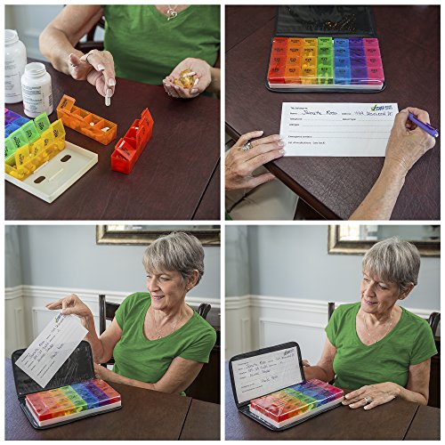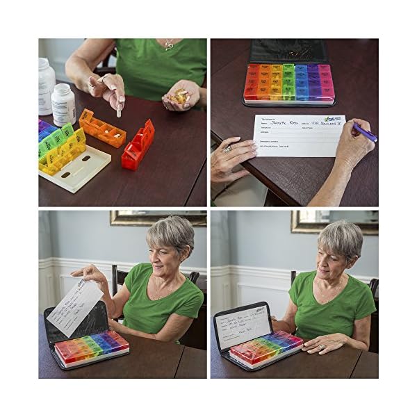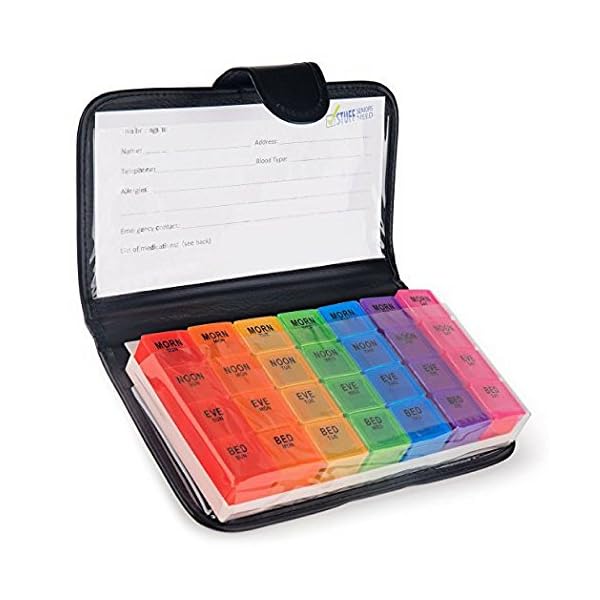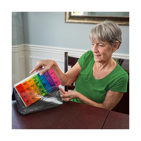 ★ PEACE OF MIND FOR CAREGIVERS: Convenient weekly pill organizer is the perfect medicine organizer 7 days in advance! Time-of-day compartments make pill management simple & precise in the stylish, attractive pill case.