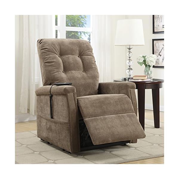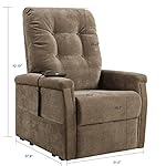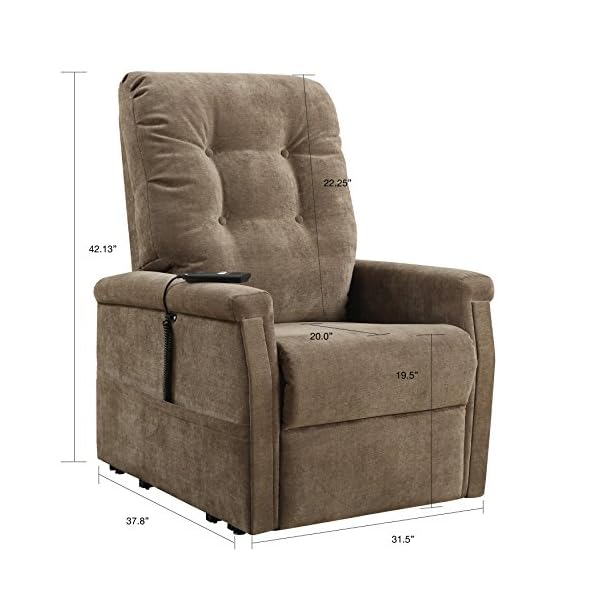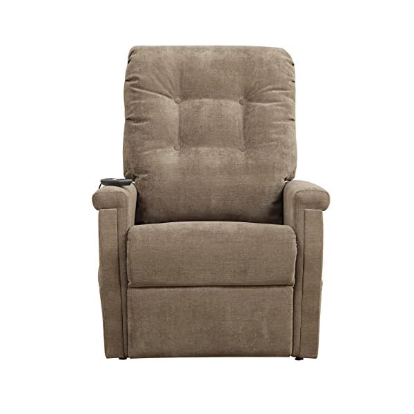 Get comfortable with the idea of the Montreal Piedra Fabric Lift Chair – a power-lift recliner that does all of the work for you! Soft, premium 100% polyester upholstery (in your choice of available colors) covers a wood frame and power-lift recline mechanism. The easy-to-use push-button remote puts all of the control in your hands while the individually wrapped, drop-in pocketed coils prevent sagging for a more supportive seat. A plush button-tufted back, streamlined, padded seat, and keyhole arms complete the look and feel. The magazine pocket makes for a handy place to stash reading materials or remotes, and a battery back-up pack ensures the power-lift feature will be there for you whenever you need it. Contemporary color options make this an ideal recliner for a variety of spaces and styles. Prime Resources International is a leader in motion upholstery. They design and market a wide variety of reclining chairs, sofas, loveseats, sectionals, home theater collections, and more. Prime Resources offers an enticing mix of superior comfort, style, and design. Prime Resources International is part of Home Meridian International, which was founded in 1955 as Pulaski Furniture. Dimensions: 31.5W x 37.8D x 42.13H in.. Easy-to-use push-button remote power-lift feature. Power-lift feature moves chair both up and down. Premium, 100% polyester upholstery. Your choice of available color options. Individually wrapped, drop-in pocketed coils prevent sagging. Plush padded seat, arms, and back. Wood frame construction. Smooth, quiet lift mechanism with battery back-up. Button-tufted back, streamlined seat, and keyhole arm detailing. Magazine pocket for convenient storage. Durable, easy-clean upholstery. 1-year limited manufacturer's warranty.