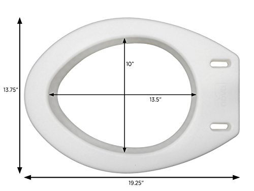 SPECIFICATIONS: Weight capacity: 300 pounds; Overall Dimensions: 19.25"D x 14"W x 3.75"H; Toilet Opening: 10.25"W x 13.5"D
