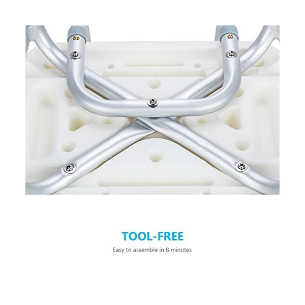 Secure, Easy to Use-Our Shower Seat is cleared the highest standard in medical shower stool; Tool-Free, Easy to assemble in 8 minutes