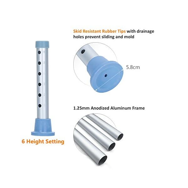6 Height Setting-Easily adjust the height of the shower stool to create a secure, customized experience. With a range of 16¡±-21¡±, the seat adjusts to fit for the elderly, seniors, adults, disabled, pregnant women