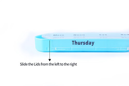 Easy Slide to Open Lid Design: It's easy to slide the lids off and on. Instead of popping a lid open and accidentally spilling your pills, our lid slides. The size of each compartment is 4.2inch(L) x 1.3inch(W) x 0.65inch(D).